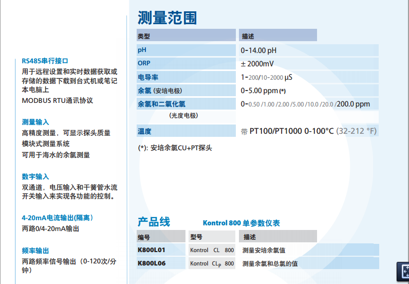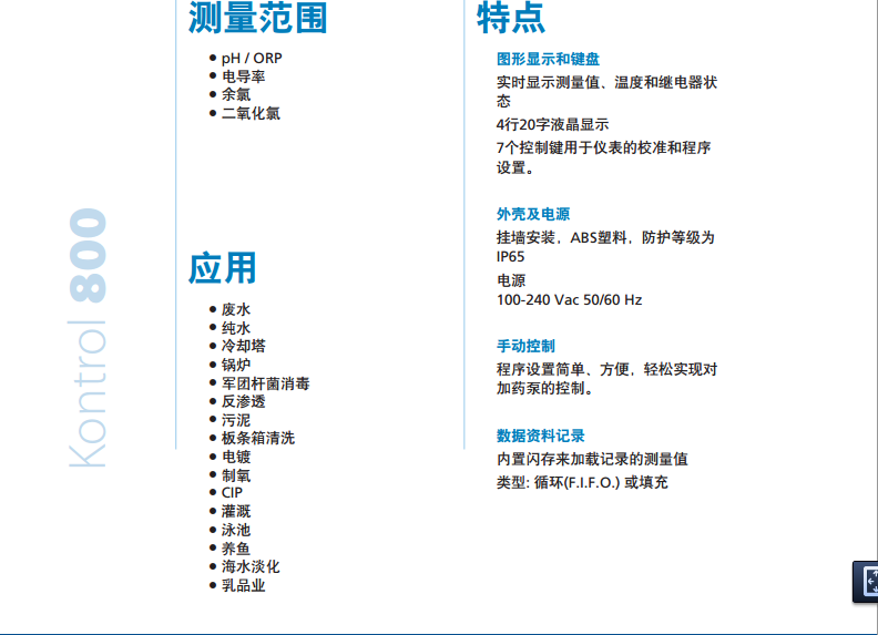 多參數水質監控儀是一款適用于需要同時監控多個參數的復雜應用場合的多參數儀表,具有獨立的比例控制輸出,兩路可調頻率輸出,RS485串行接口(MODBUS協議),三個繼電器輸出,探頭質量顯示和數據記錄功能。