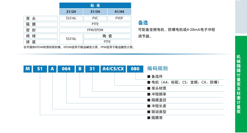 MS1系列泵是一種機(jī)械隔膜計(jì)量泵,具有彈簧復(fù)位機(jī)械裝置和鋁制外殼。