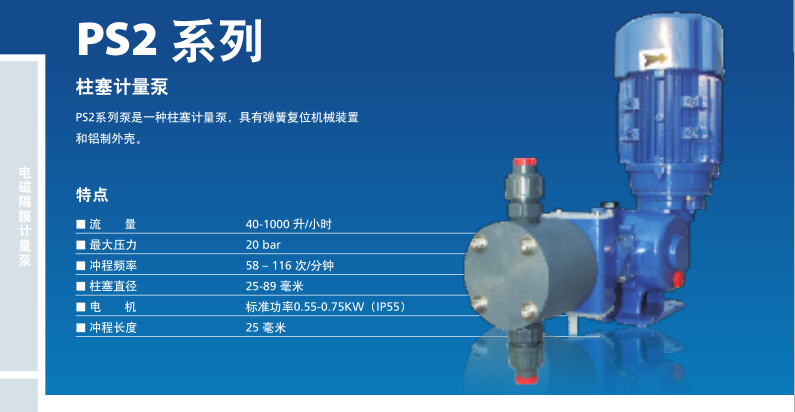 PS2系列泵是一種柱塞計量泵,具有彈簧復位機械裝置和鋁制外殼。